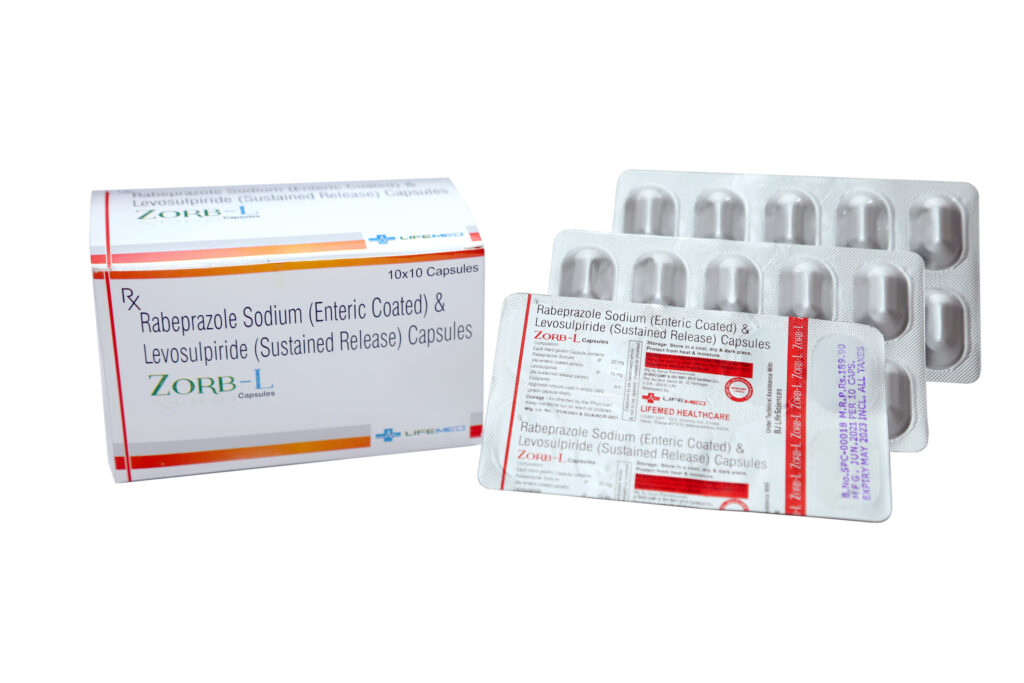 GERD DEMANDS PROMPT DAMAGE CONTROL WITH SUPERIOR EFFICACY & HEALING RATE. ZORB-L IS A COMBINATION OF TWO DRUGS, RABEPRAZOLE & LEVOSULPIRIDE. RABEPRAZOLE REDUCES ACID SECRETION & LEVOSULPRIDE IS AN ANTAGONIST OF DOPAMINE D2 RECEPTORS ACTIVITY ON BOTH CENTRAL & PERIPHERAL LEVELS. ZORB-L IS THE BEST PRESCRIBED DRUG FOR PATIENTS WITH GERD, GASTRIC ULCERS, GERD ASSOCIATED WITH STRESS, IBS.